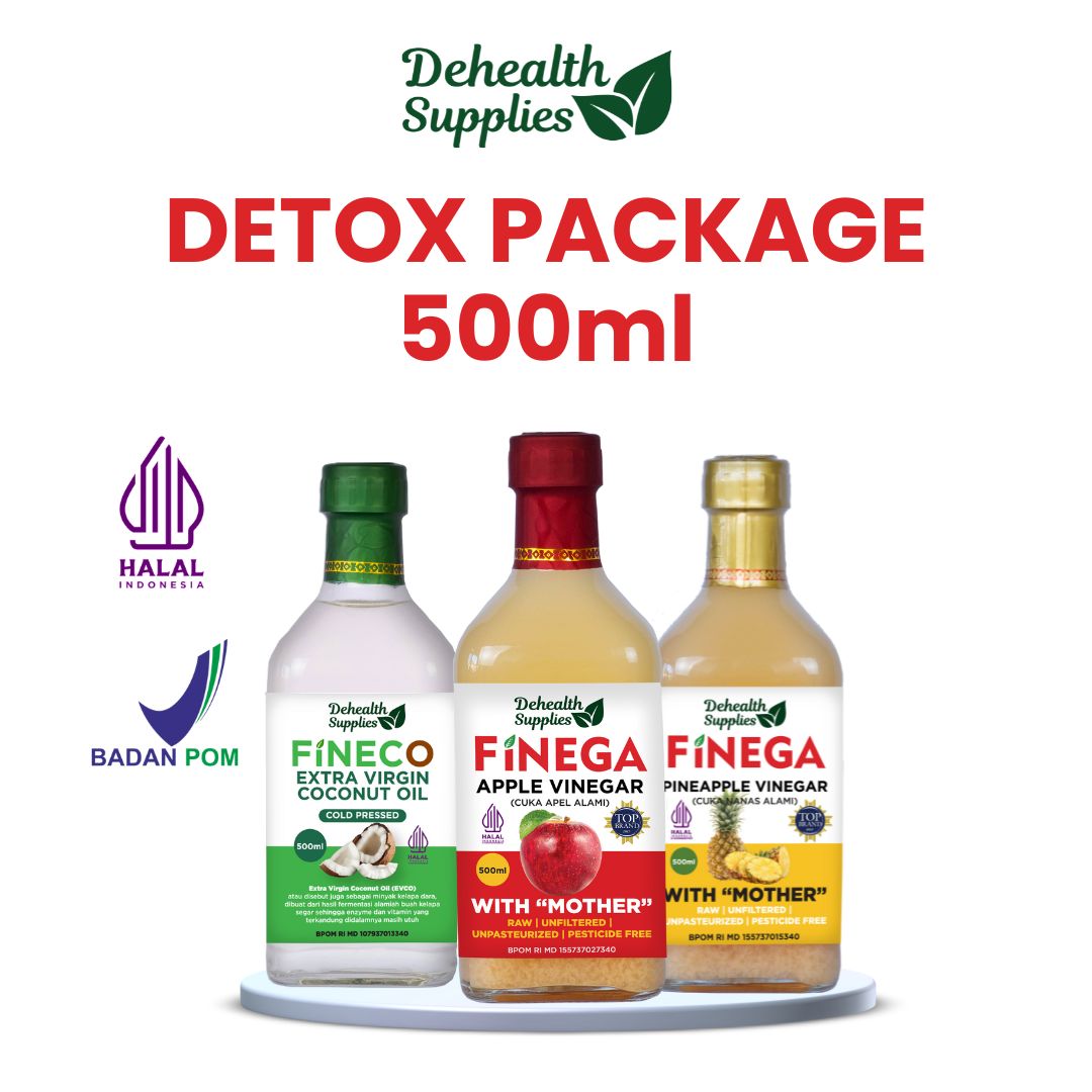 DETOX PACKAGE – Cuka Apel 500ml Kaca & Cuka Nanas 500ml Kaca & VCO 500ml Kaca